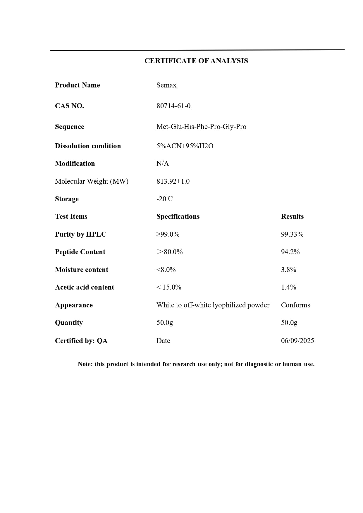 Semax 10mg – Ultra-Pure Heptapeptide for Advanced Research